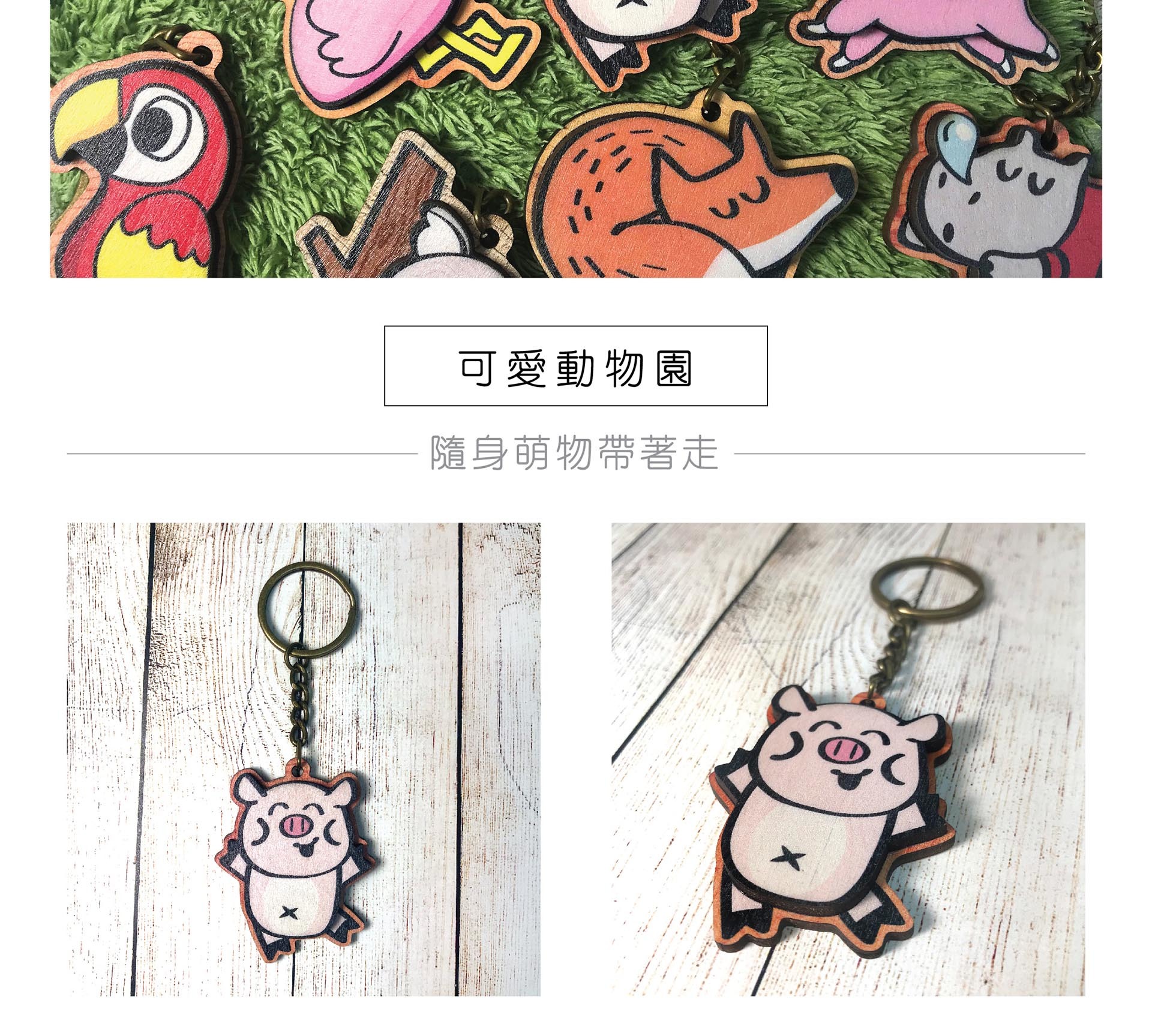 可愛動物園木頭鑰匙圈-大象