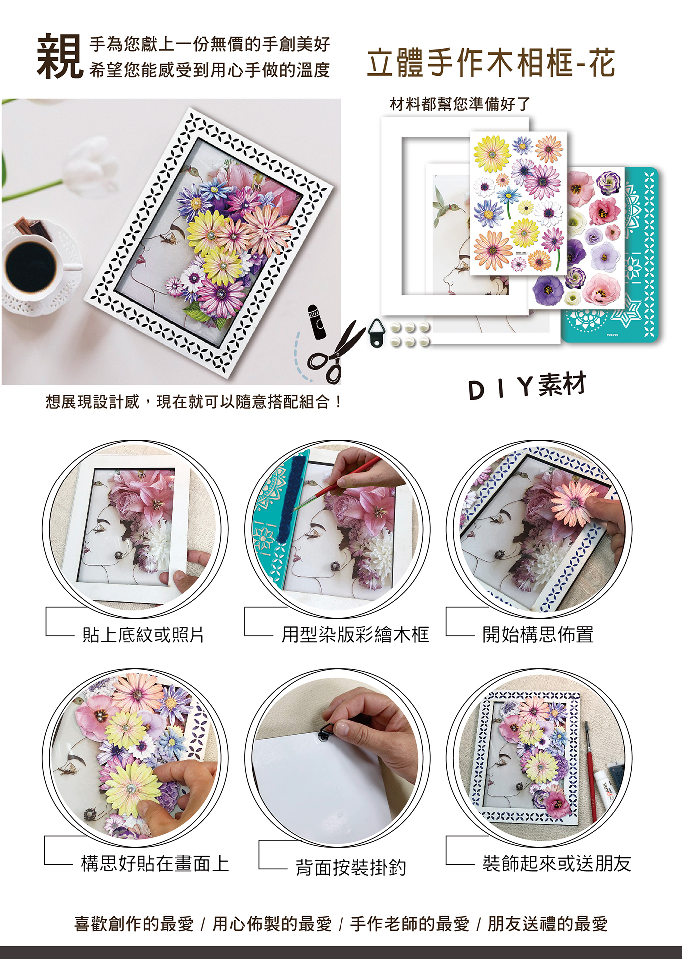 DIY手作木相框素材包-【花型女性】